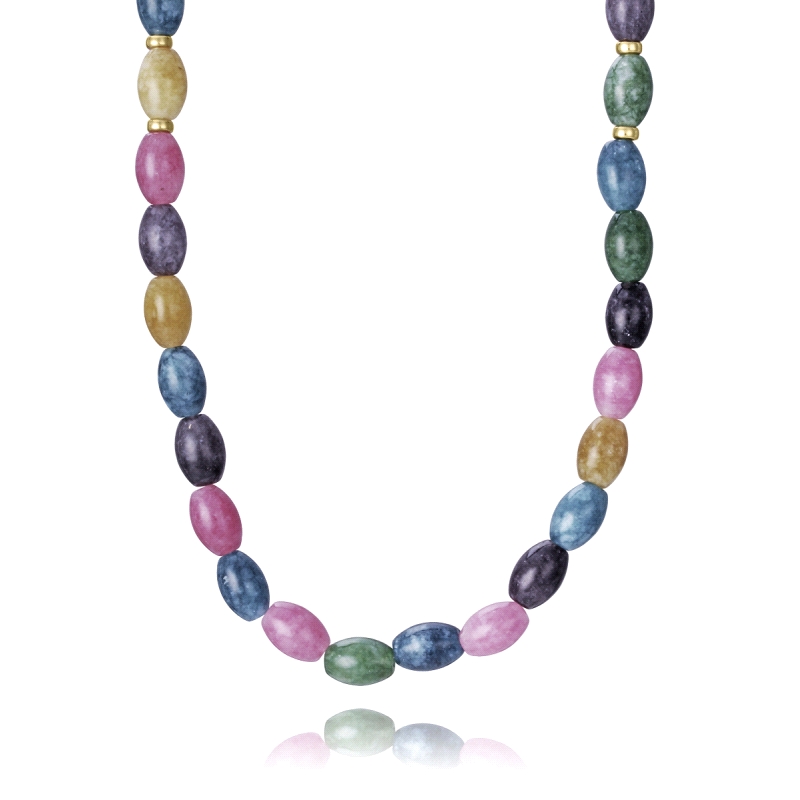 Un collar Viceroy que refleja elegancia y serenidad a través de su diseño atemporal. Elaborado en plata de primera ley con un delicado baño de oro, se realza con piedras naturales de jade, conocidas por su belleza y su capacidad para transmitir calma y equilibrio. El jade verde aporta un toque fresco y vibrante que contrasta de manera perfecta con el brillo cálido del baño de oro. Con un largo de 42 cm, este collar se adapta a diferentes estilos y escotes, convirtiéndolo en una pieza versátil y sofisticada. Ideal para mujeres que buscan un accesorio que combine elegancia, naturaleza y distinción.