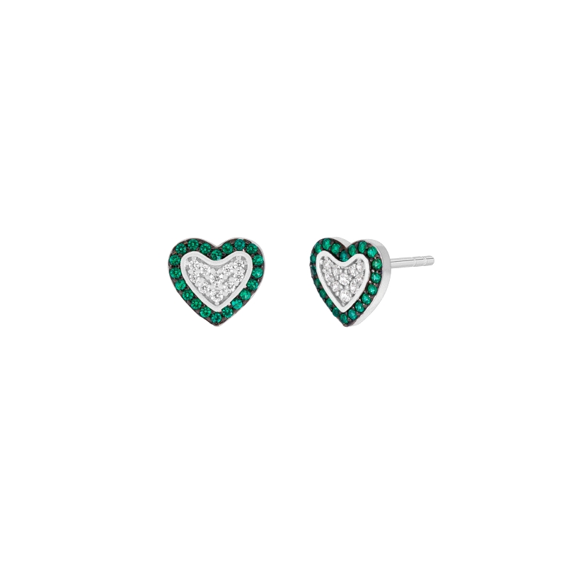 Pendientes Marea corazón circonitas color verde. Plata de 1ª Ley rodiada. Circonitas en microengaste. Cierre presión.